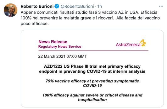 “Alla faccia del vaccino poco efficace” ha commentato lo scienziato Roberto Burioni su Twitter dopo la diffusione del documento.