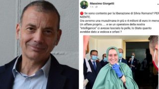 Massimo Giorgetti, vicepresidente del Consiglio regionale del Veneto ed esponente di Fratelli d’Italia, si scaglia contro la liberazione di Silvia Romano (qui il suo profilo). In un post pubblicato sui suoi profili social, che poi ha successivamente modificato, Giorgetti ha infatti scritto: “Se sono contento per la liberazione di Silvia Romano? Per niente. Ora avremo una musulmana in più e 4 milioni di euro in meno. Un affare proprio. E se un operatore della nostra intelligence ci avesse lasciato la pelle, lo Stato quanto avrebbe dato a vedova e orfani?”. Il vicepresidente del Consiglio regionale del Veneto ha poi modificato il commento per paura “di essere cancellato”, ma ha rincarato la dose pubblicando una vignetta in vengono fatte notare le differenze tra il ritorno di Silvia Romano in Italia e quello che dovrebbe essere il rientro di una salma di un militare caduto in una missione all’estero.