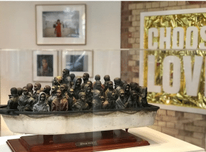 Per la risposta al contest, l’artista rimanda al sito ufficiale di Choose Love, il “primo negozio al mondo che vende veri prodotti per i rifugiati”. L’opera, intanto, come scrive ancora l’artista nel post, resterà esposta all’Help Refugees shop di Carnaby Street, a Londra. Chiunque volesse acquistare l’opera, dovrà indovinare il suo peso entro le 20 del 22 dicembre. Un dato interessante per chi volesse tentare è che la scultura misura 90 x 38 x 42 centimetri. Tentar non nuoce, in fondo sono appena 2,25 euro.