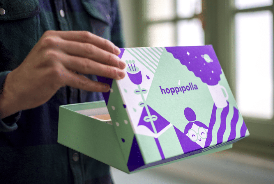 Dal 2016, le scatole Hoppipolla hanno completamente conquistato il mondo virtuale: tramite un servizio d’abbonamento, ogni mese è possibile ottenere una scatola a sorpresa (rigorosamente per adulti) contenente una proposta diversa, slittando dal design alla musica, dall’editoria alle piccole eccellenze gastronomiche: un quadro variopinto per promuovere realtà creative in ogni salsa.