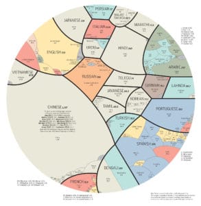 La grafica mostra anche quelle lingue che le persone vogliono imparare nel mondo. L’inglese per esempio ha oltre un miliardo e cinquecento milioni di studenti.