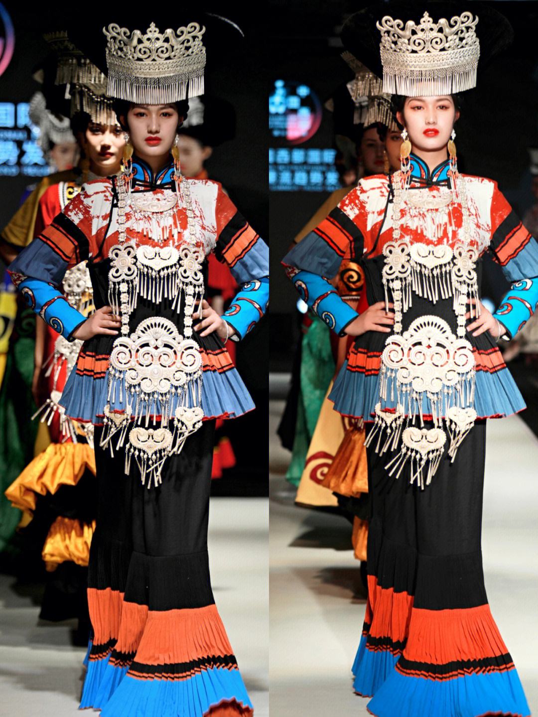 I ricami Yi sono spesso realizzati su sfondo nero con i motivi preferiti dagli Yi, come nuvole, semi, gioielli d’argento. Un patrimonio culturale immateriale che ha una storia di 1700 anni, chiamata orgogliosamente dagli Yi “l’arte sui polpastrelli, il fiore sul cuore”. Questa sfilata, con quattro abiti d’eccellenza, ha dimostrato la bellezza specifica del ricamo Yi. Zhu Weiming, responsabile della sfilata, ha detto: “Questi abiti, ispirati al ricamo Yi, integrano bene i motivi dell’etnia Yi quali tigri, semi e fiori con le buone stoffe italiane. È un grande regalo per la cultura Yi.” Il Ricamo Yi, che si è sviluppato negli ultimi mille anni, dalle montagne alle città, dalle origini ambientaliste alla trasformazione globale, presenta in modo vivido che “la culturale nazionale è anche internazionale”.