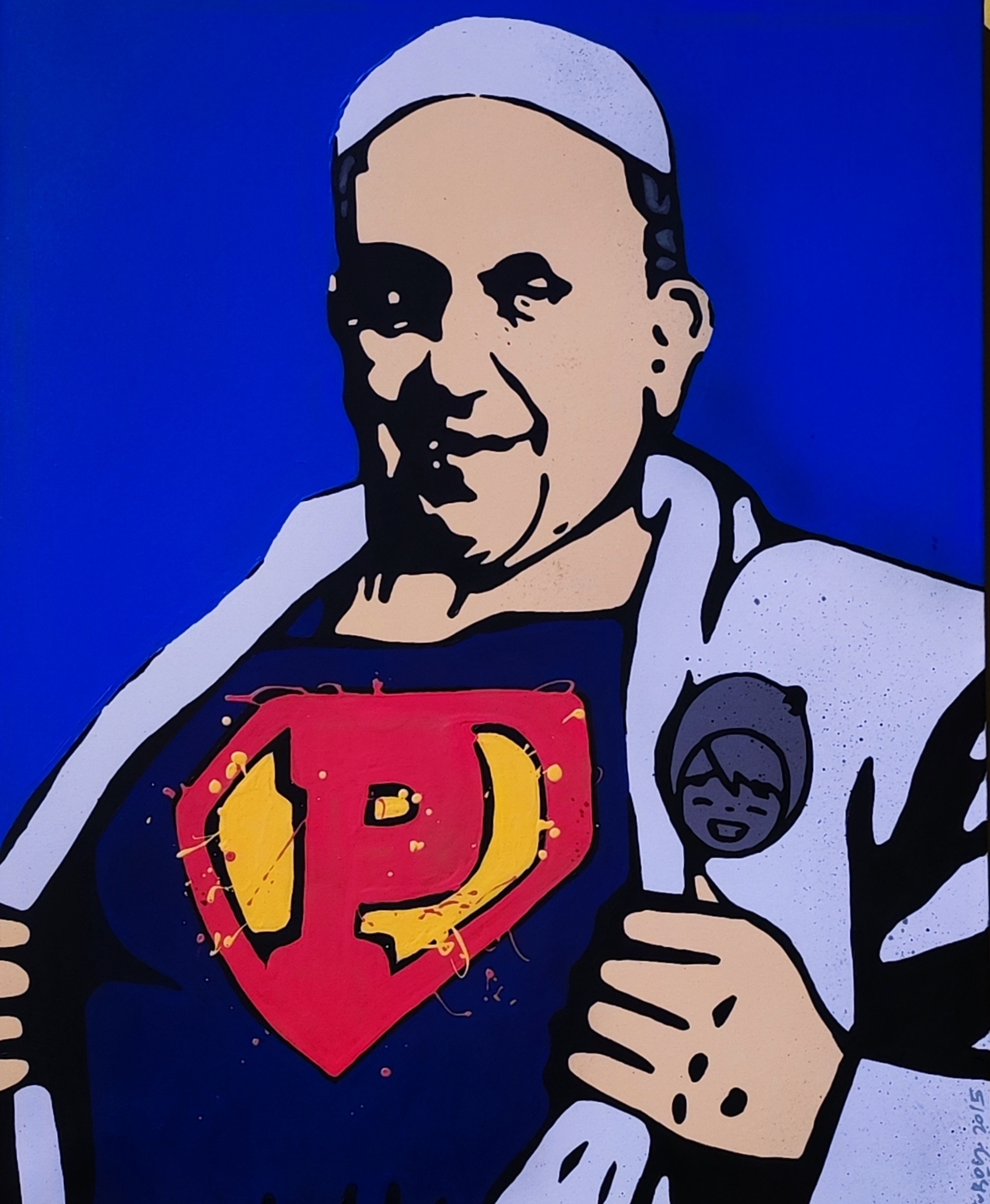 TvBoy invece preferisce Papa Francesco e lo rappresenta come fosse un Superman.