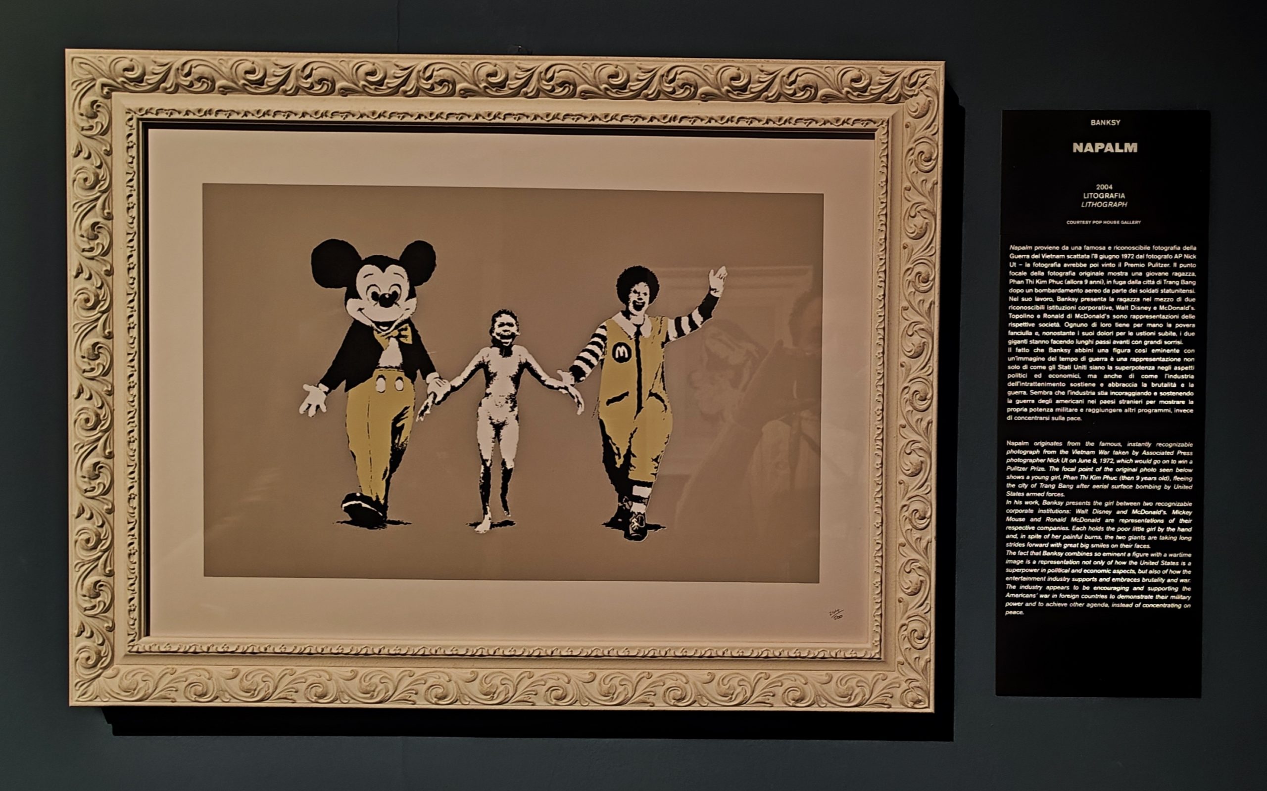 Tra le 60 opere esposte sono presenti anche altri fenomeni artistici. L’Obamiano Obey che con la sua opera “Hope” inneggia al grande politico americano, Mr. Brainwash che insieme a Ravo, rivisitano opere del passato come Mona Lisa e la ragazza con l’orecchino di perla, per poi finire con Laika e il suo “Not is game” e con Pau Bordino e la sua “Santa suerte”. La mostra è curata da Piernicola Maria di Iorio ed è stata anche contestata da fasce estremiste che hanno chiesto la visita gratuita e l’autoriduzione. Ragazzi terribili questi artisti controcorrente ma anche in contrasto con il loro mondo vicino ai centri sociali dai quali x alcuni di loro è partita l’esperienza artistica..