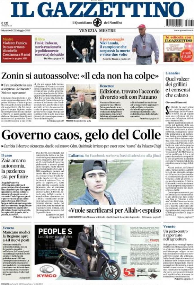 Il Gazzettino: “Governo caos, gelo del Colle. Cambia il decreto sicurezza, duello sul nuovo Cdm. Quirinale irritato per essere stato ‘usato’ da Palazzo Chigi”