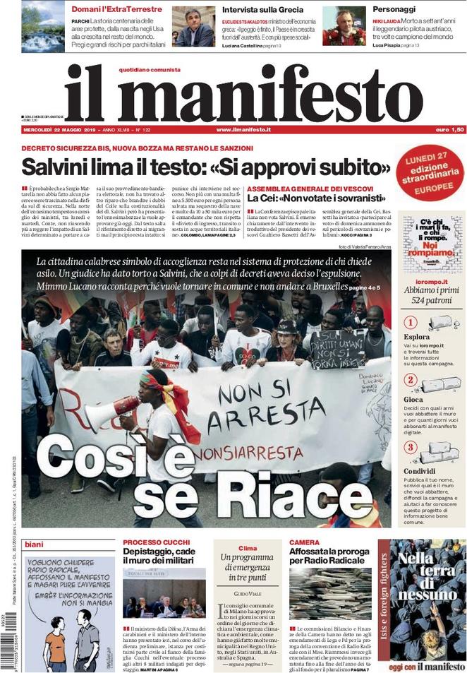 Il Manifesto: “Così è se Riace. La cittadina calabrese simbolo di accoglienza resta nel sistema di protezione di chi chiede asilo. Un giudice ha dato torto a Salvini, che a colpi di decreti aveva deciso l’espulsione. Mimmo Lucano racconta perché vuole tornare in comune e non andare a Bruxelles”