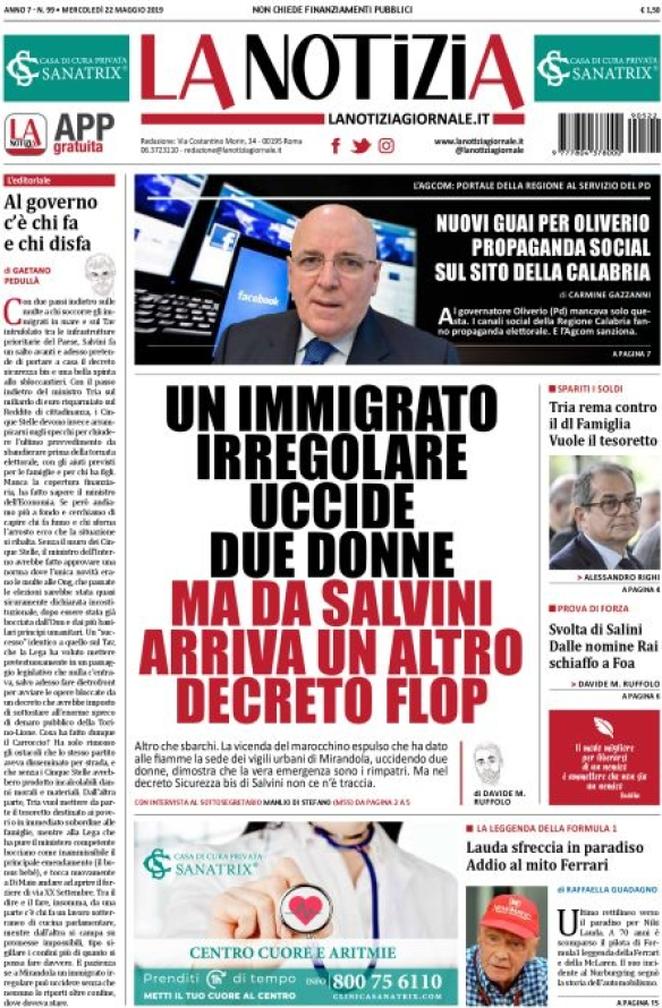La Notizia: “Un immigrato irregolare uccide due donne ma da Salvini arriva un altro decreto flop”
