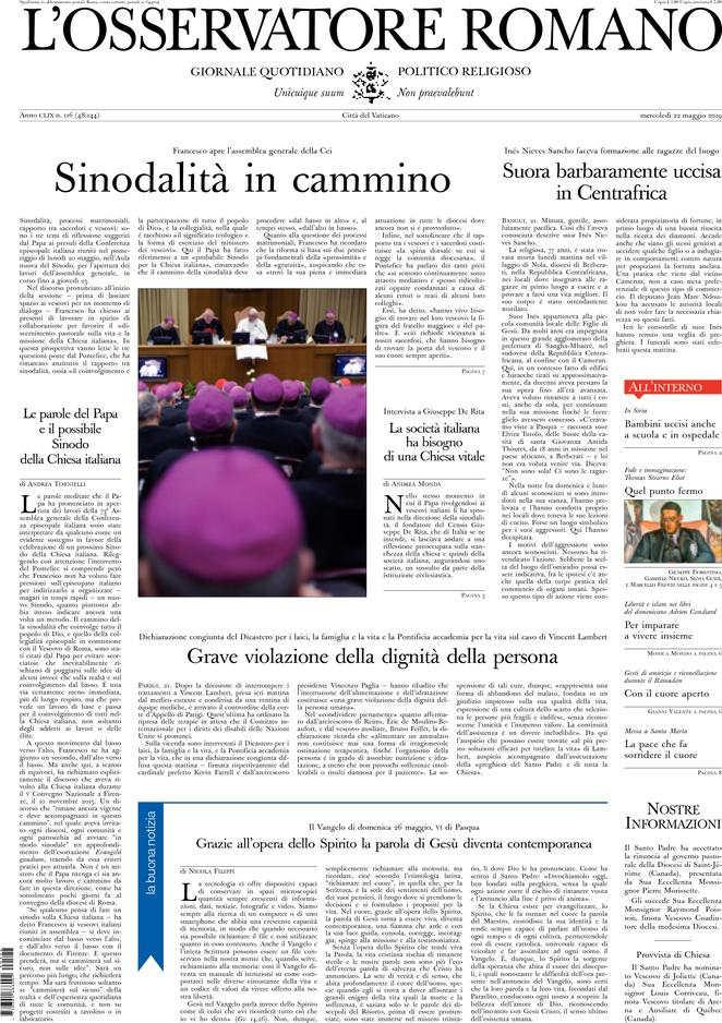 Le prime pagine dei quotidiani di oggi, mercoledì 22 maggio