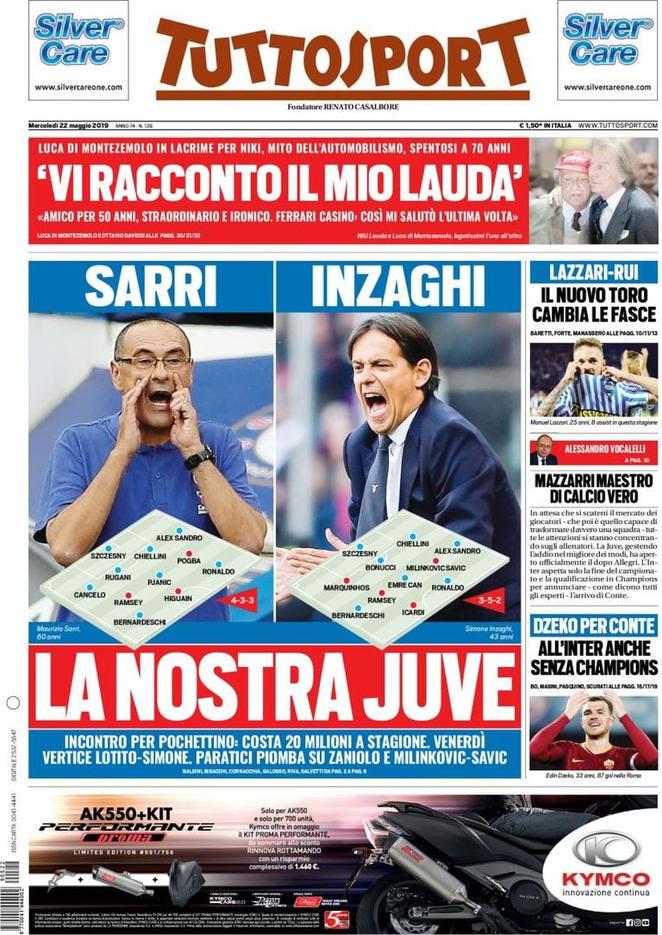 Tuttosport: “Sarri-Inzaghi. La nostra Juve. Incontro per Pochettino: costa 20 milioni a stagione. Venerdì vertice Lotito-Simone. Paratico piomba su Zaniolo e Milinkovic-Savic”