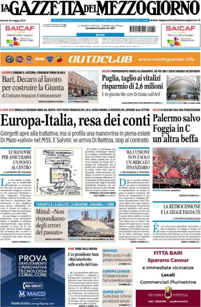 La Gazzetta del Mezzogiorno: “Europa-Italia, resa dei conti”