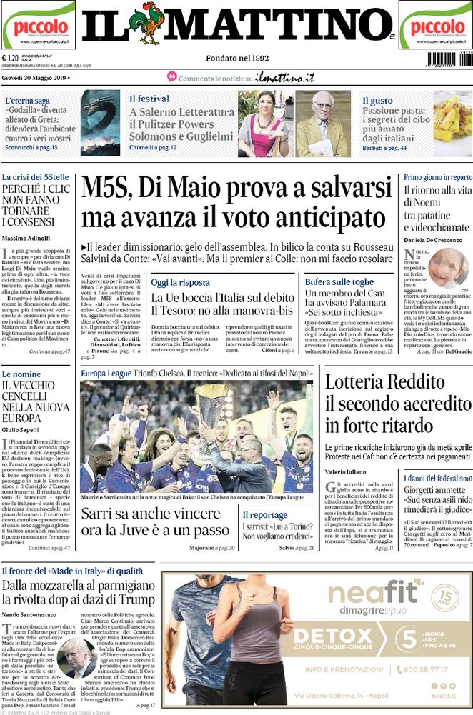 Prime pagine quotidiani oggi | Giovedì 30 maggio 2019 | Giornali sportivi