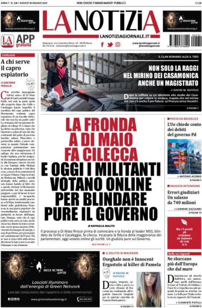 La Notizia: “La fronda a Di Maio fa cilecca. E oggi i militanti votano online per blindare il governo”