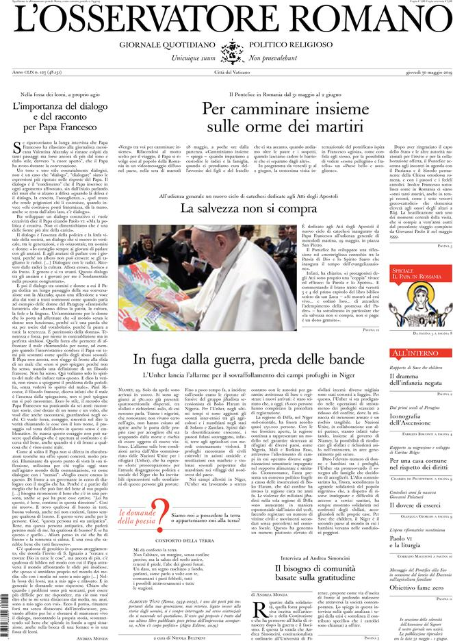L’Osservatore Romano: “La salvezza non si compra”