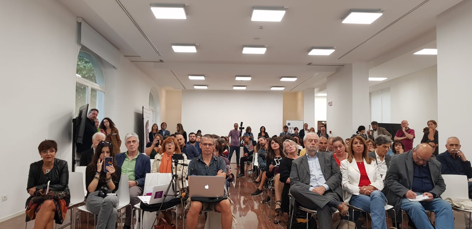 Erano presenti anche Marco Ancora in rappresentanza della Confederazione italiana unione delle professioni intellettuali, Andrea Valeri responsabile culturale di Palazzo Merulana, il curatore Alberto Dambruoso ideatore dei martedì critici, l’artista Angelo Bellobono uno dei componenti dei punti di vista.