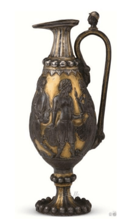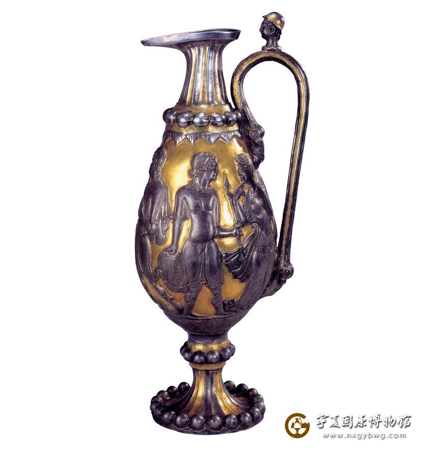 La brocca in argento dorato era originariamente un recipiente per bere della dinastia persiana. Questo vaso d’argento proveniva dall’Impero romano ed entrò in Cina lungo la Via della Seta all’inizio del IV secolo d.C.