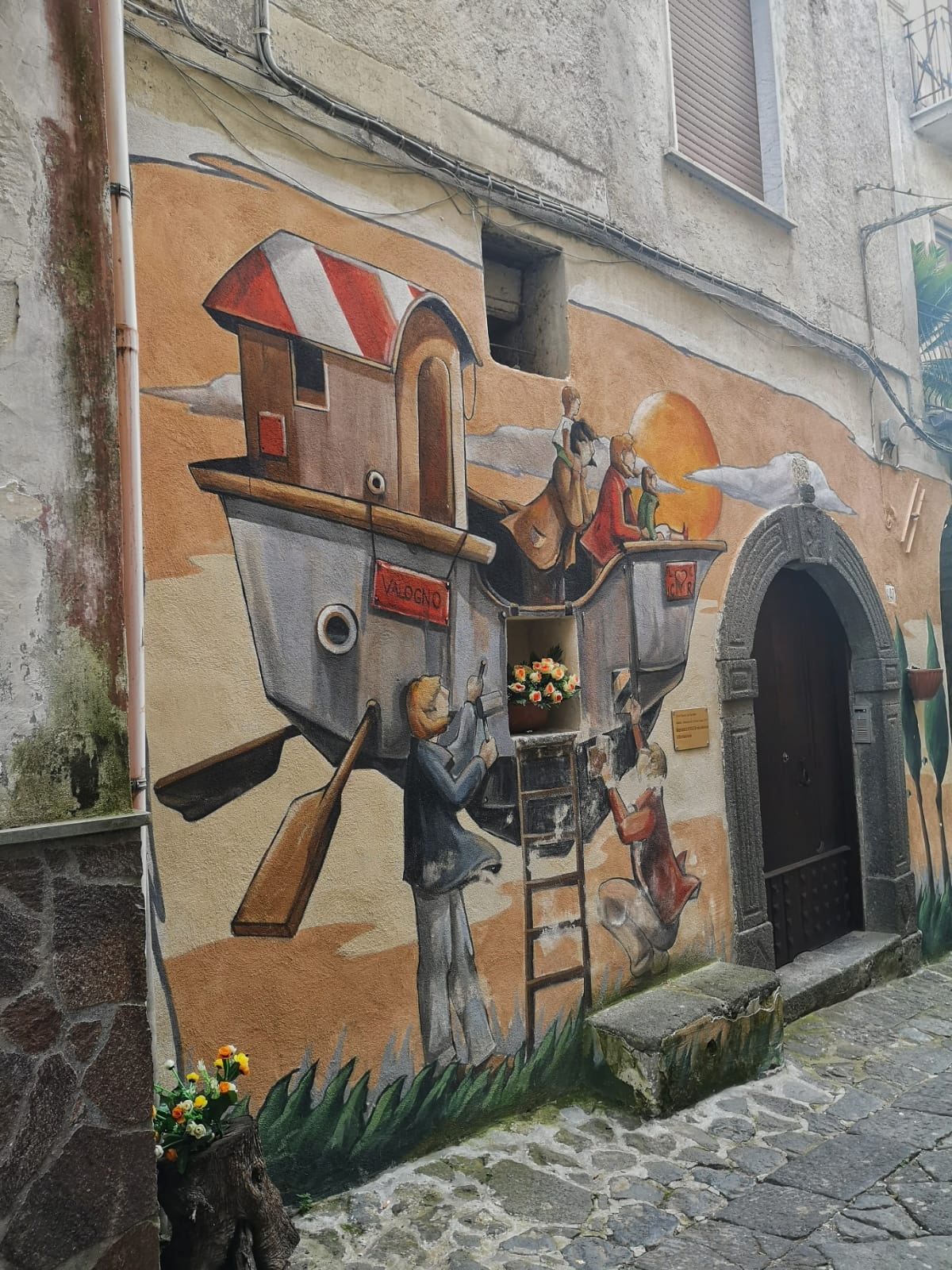 Valogno murales – Quella di Valogno, nel casertano, potrebbe essere una delle tante storie che si raccontano sui piccoli borghi meridionali, spopolati a causa delle scarse possibilità lavorative e dei servizi inefficienti. E invece no.