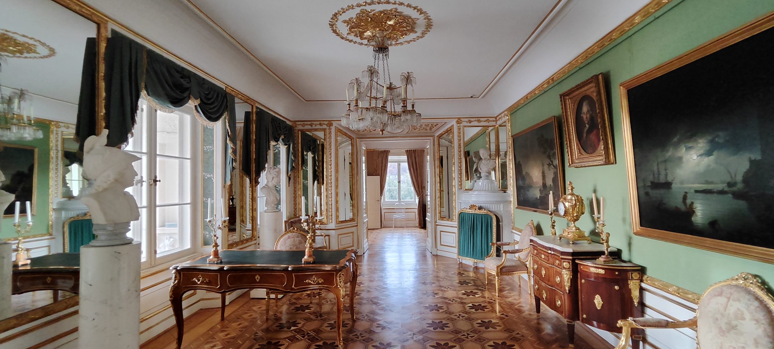Il bellissimo palazzo neoclassico era la residenza estiva della famiglia reale fu progettato, dall’architetto italiano Domenico Merlini e da Tielman Van Gameren su committenza del conte Stanislaw Herakliusz Lubomirski. Il palazzo sorge su un laghetto artificiale. Nel 1766 il lungimirante e illuminato re Stanislao II Augusto Poniatowsky acquistò il palazzo insieme a tutta la tenuta composta da una bellissima arancera con un teatro adiacente, un teatro all’aperto, ristrutturando il tutto e facendo costruire il palazzo Myslewicki dall’architetto italiano Merlini, facendo anche realizzare dei giardini all’inglese. Il sovrano arricchì il palazzo con decorazioni barocche e opere d’arte di artisti internazionali uno tra tutti il Canaletto. ma anche Rubens e tanti altri e lo aprì a tutto il mondo della cultura e della scienza mondiale con le mitiche cene del giovedì. Le sale più affascinanti solo quella denominata di Salomone, quella circolare nell’ex bagno lubomirski, la strepitosa camera di Bacco e la sala da pranzo dove si riunivano gli intellettuali dell’epoca. Il palazzo successivamente, con la spartizione della Polonia, andò in mano agli Zar e infine purtroppo fu semidistrutto dai nazisti e di questo ne è rimasta una testimonianza fotografica in una delle 10 sale del palazzo. Quando uscirete e camminerete nel parco tra gli scoiattoli e i pavoni e tra le belle sculture di Tommaso Righi, vi troverete davanti al bel lavoro denominato “Sfera con Sfera “del grande artista italiano Arnaldo Pomodoro. Un altro omaggio dei polacchi al nostro paese.