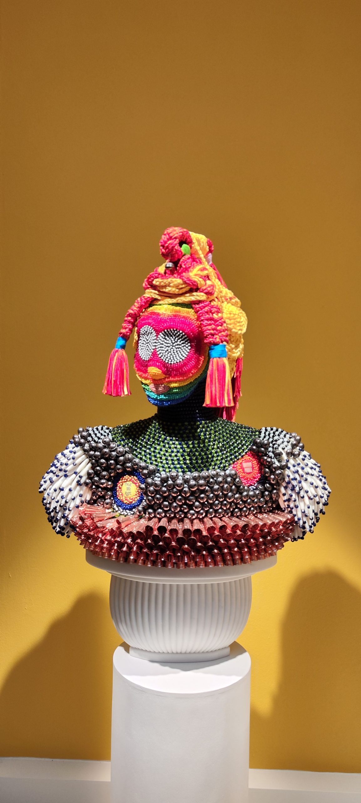 Continuando il percorso arriverete davanti ai lavori dell’artista transdisciplinare La Chola  Poblete che opera con diversi strumenti e materiali nel mondo queer denunciando l’emarginazione della popolazione boliviana che vive in Argentina.
