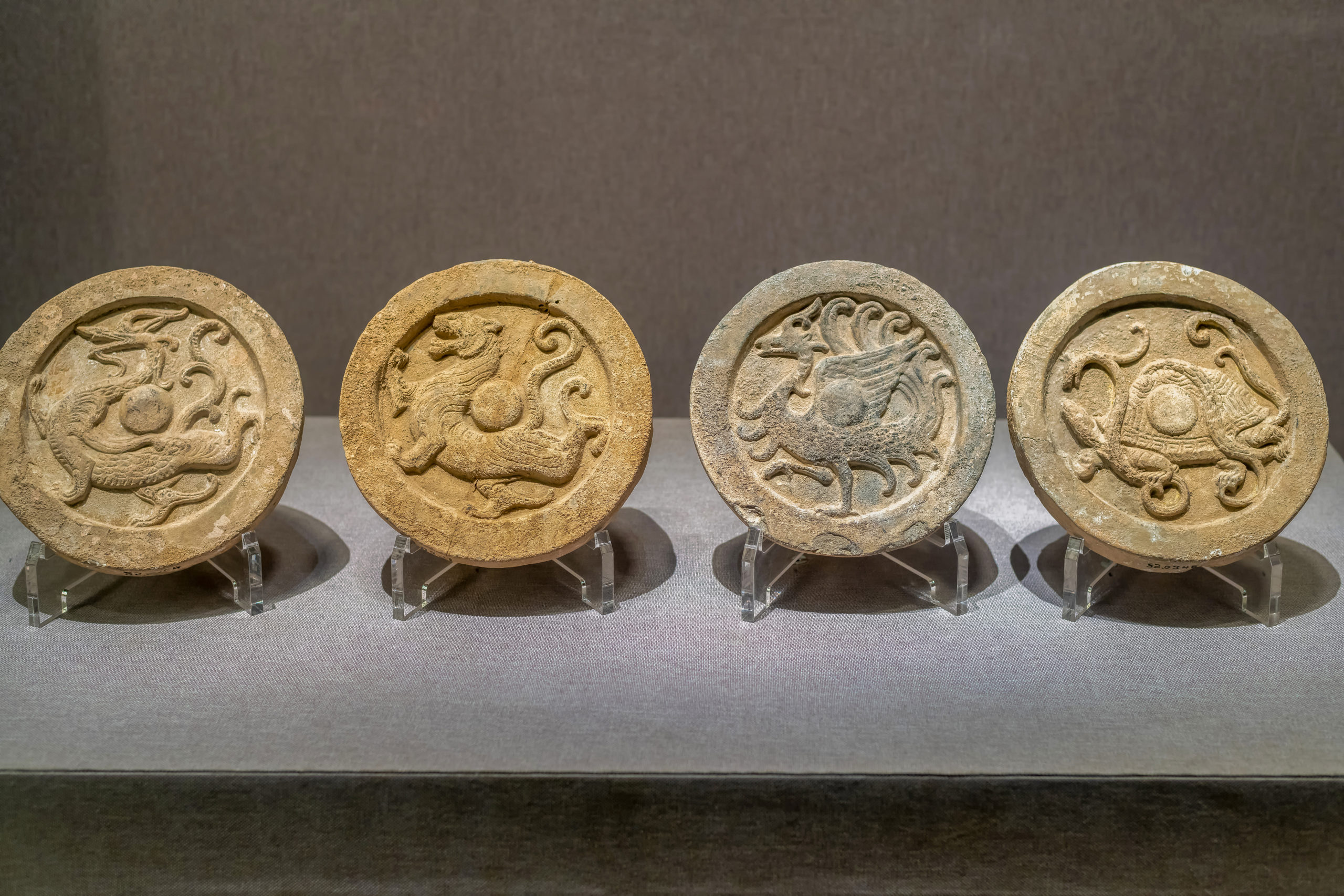 Le parole “mattoni e tegole Qin e Han” sono ancora oggi le espressioni che non possono essere ignorate quando si vuole ricordare e descrivere lo stile e il periodo di massimo splendore della decorazione architettonica. In questo periodo, i motivi a nuvola e a rotolo salirono rapidamente alla ribalta e diventarono motivi molto popolari tra le Wadang delle dinastie Qin e Han. Inoltre, divennero popolari le Wadang con le quattro animali mitologici: il Drago verde, la Tigre bianca, l’Uccello vermiglio e la Tartaruga nera. Erano particolarmente diffuse durante la dinastia Han anche le Wadang che rappresentavano benedizioni e auspici, evidenziando uno stile antico e suggestivo. Fin dall’antichità si credeva che le parole contenessero un potere. Si credeva fossero come una sorta di talismano in grado di comunicare con gli dèi, trasmettendo richieste in modo semplice e chiaro. Per questo motivo, venivano comunemente utilizzate su vari edifici Wadang con caratteri di buon auspicio. Degli oltre 300 tipi diversi di Wadang con caratteri che si possono trovare oggi, quelle con parole di buon auspicio ne costituiscono più della metà. Tra queste, “Mille anni”, “Vita prolungata”, “Longevità”, “Gioia eterna”, “Lunga vita alla fortuna”, “Non dimentichiamoci mai l’uno dell’altro”.