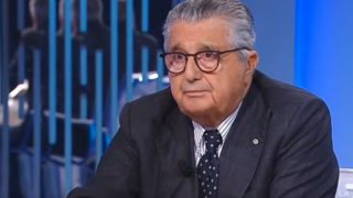 Carlo De bendetti in tv a Otto e Mezzo. Immagine da video di La7