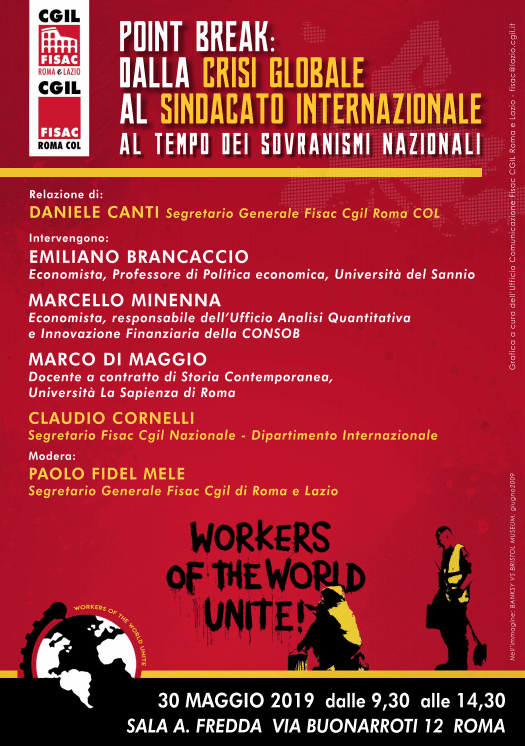 L’evento, organizzato dalla Fisac Cgil, si intitola “Point break: dalla crisi globale al sindacato internazionale al tempo dei sovranismi nazionali”.