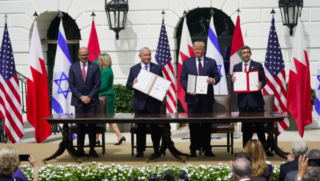 Il premier israeliano Benjamin Netanyahu, i ministri degli Esteri di Emirati Arabi Uniti Mohamed bin Zayed Al Nahyan e del Bahrein Hamad bin Isa Al Khalifa hanno firmato alla Casa Bianca gli “Accordi di Abramo” per la normalizzazione delle relazioni tra i Paesi. L’accordo è stato siglato alla Casa Bianca, alla presenza del presidente statunitense Donald Trump che ha dichiarato: “Dopo decenni di violenze questi accordi segnano “l’alba di un nuovo Medio Oriente grazie al coraggio dei leader visionari di questi tre Paesi”.