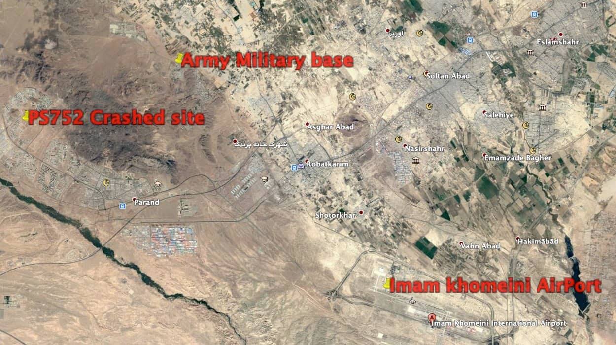Questa l’analisi di Bellingcat: “Misurando il tempo impiegato dalla telecamera per registrare l’esplosione, abbiamo stimato la distanza dall’obbiettivo (cerchio rosso) e incrociato i dati con la geolocalizzazione del video e la traiettoria di volo del PS752”.