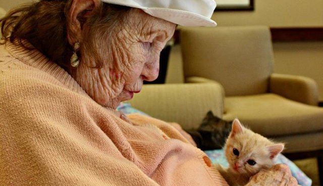 Come progetto pilota, il rifugio ha inviato dei gattini che avevano appena aperto gli occhi quando si sono ritrovati tra le mani piene di rughe degli anziani.