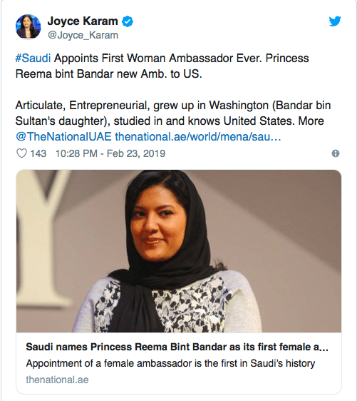 Proprio negli Stati Uniti il principe Mohammed bin Salman ha scelto una donna per rappresentare il suo Paese in un momento in cui l’assassinio del giornalista e dissidente, Jamal Khashoggi, mette a dura prova le relazioni tra i due alleati.
