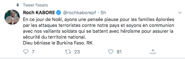 “Questo attacco barbaro ha provocato la morte di 35 vittime civili, la maggior parte delle quali donne”, ha dichiarato il presidente del Burkina, Roch Kaborè. Si è trattato di un attacco “terroristico” contro il distaccamento militare ad Arbinda, una città nel Sahel nell’estremo Nord del Paese, al confine con il Mali che ospita una base militare, secondo una fonte militare che ha chiesto l’anonimato.