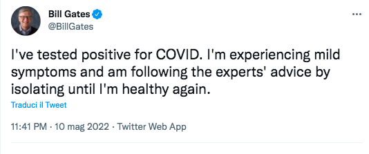 Bill Gates: “Ho il Covid, per fortuna ho fatto il vaccino”