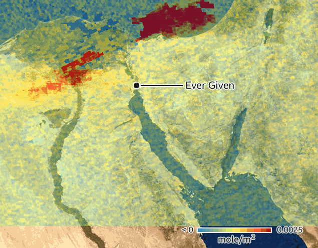 Il blocco del canale di Suez ha causato un picco di inquinamento: le foto dallo Spazio
