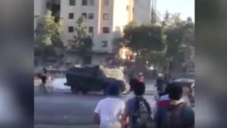 Un giovane manifestante è stato volontariamente travolto da una camionetta della polizia cilena e schiacciato contro un’altra camionetta, restando gravemente ferito.