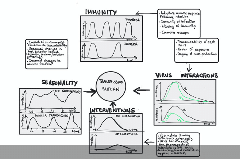 Secondo studi precedenti l’infezione da un virus può fornire una protezione di circa una settimana contro una seconda infezione, mentre altre ricerche – secondo quanto spiegato da Galanti – sembrano suggerire che gli anticorpi possono svilupparsi a prescindere dalla gravità della malattia alle vie respiratorio. “Sebbene siano state documentate alcune coinfezioni SARS-CoV-2 con altri virus non abbiamo dati sufficienti a trarre delle conclusioni. A livello di popolazione, una epidemia di influenza stagionale potrebbe mettere a dura prova il sistema sanitario. La letteratura scientifica sembra confermare la trasmissibilità aumentata di Covid-19 durante i mesi invernali, che pongono le condizioni favorevoli alla diffusione del virus, il che è comune amolti virus respiratori”, ha spiegato invece osserva Sherman, ricordando che i Coronavirus endemici (OC43, HKU1, NL63, 229E) mostrano stagionalità nelle regioni temperate.