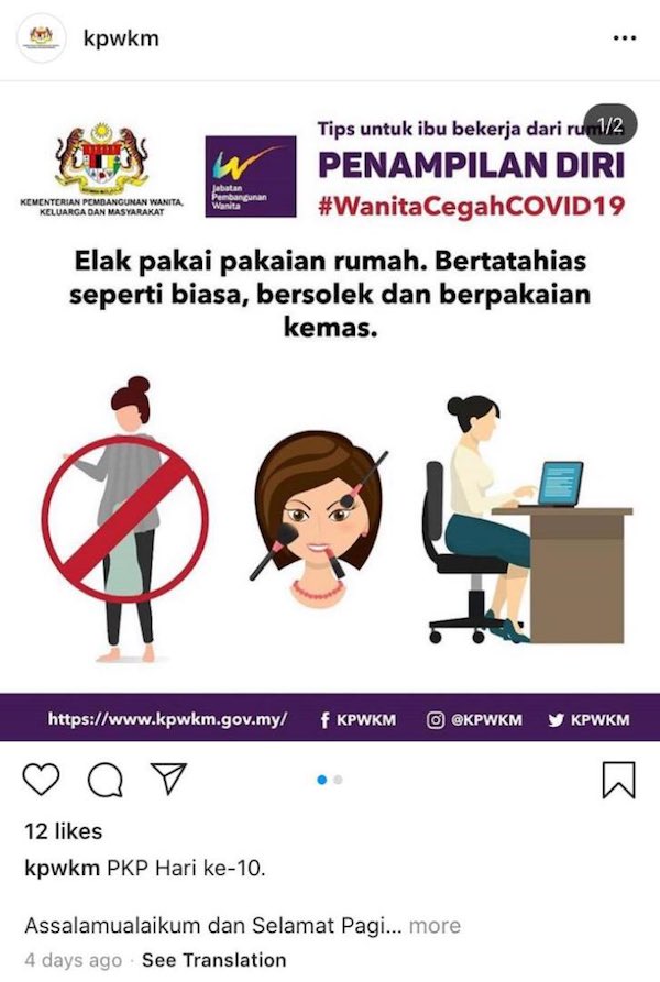 La campagna Facebook sessista promossa dal governo della Malesia ha provocato rabbia e indignazione. Il ministero per le Donne della Malesia si è scusato e ha ammesso che i suggerimenti potrebbero aver offeso alcune persone. Nelle scuse il governo malese si è giustificato dicendo che i consigli erano volti a “mantenere relazioni positive tra i membri della famiglia durante il periodo della quarantena”.