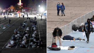 Le immagini dei senzatetto che dormono negli spazi contrassegnati di un parcheggio di Las Vegas (Nevada, Usa) stanno facendo discutere. I clochard sono sistemati nei blocchi, in genere occupati dalle auto, per mantenere la distanza di sicurezza di un metro ed evitare quindi il contagio da Coronavirus.