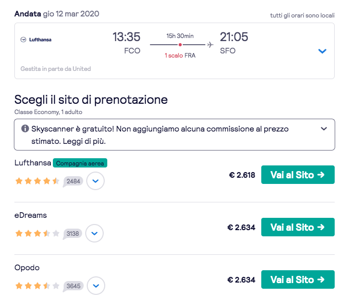 Il blocco sarà attivo da venerdì mattina, noi di TPI abbiamo allora controllato i prezzi degli ultimi voli possibili. In tre delle città più gettonate, New York, San Francisco e Miami il costo di viaggio si aggira tra i mille e i duemila euro.