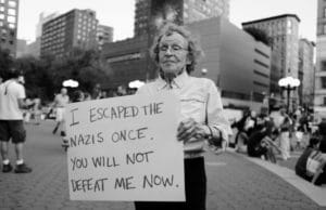 In particolare, ciò che ha attirato l’attenzione sull’anziana signora è stato un cartello che questa teneva in mano, sul quale era scritto: “Sono sfuggita ai nazisti. Non mi sconfiggerete adesso”.