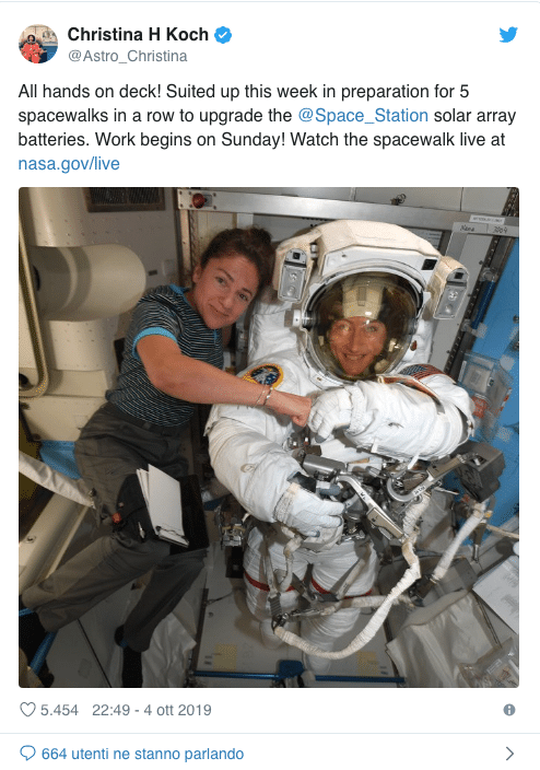 Lo scorso marzo, infatti, quella che avrebbe dovuto essere la prima passeggiata di sole donne nello spazio è stata rimandata proprio per un problema di tute. Sembra assurdo ma è così. Non c’erano le protezioni della taglia adeguata per fare partire insieme le due astronaute. Questa volta il problema non ci sarà.