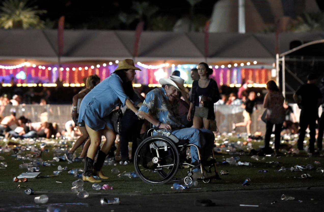 Proprio in quel momento Becker ha visto le prime persone fuggire. La ragione di questi intervalli è dovuta al fatto che Stephen Paddock, il responsabile della sparatoria, ha colpito la folla nel punto in cui era più fitta, per poi fermarsi e dare modo a chi era sfuggito ai suoi colpi di alzarsi, a quel punto l’uomo riprendeva a sparare per uccidere il maggior numero di persone possibile.