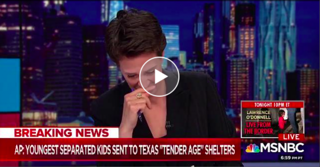 La notizia che Rachel Maddow doveva leggere in diretta proveniva dall’agenzia Associated Press e rivelava che l’amministrazione di Trump ha attivato tre centri di detenzione speciale per i bambini più piccoli separati dai genitori migranti al confine tra Stati Uniti e Messico.