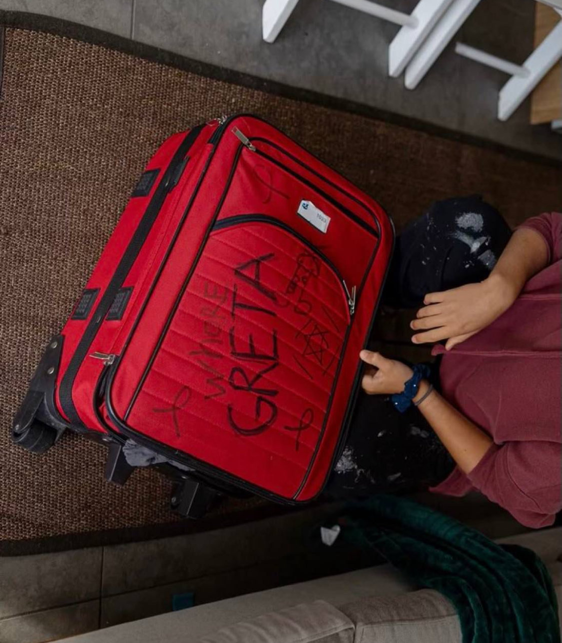 Greta Thunberg racconta altri dettagli: “Ci negavano acqua e cibo per ore. In prigione, le guardie ci picchiavano, ci minacciavano e ci umiliavano psicologicamente. C’era anche un ministro israeliano (Ben Gvir ndr.) che gridava: ‘Siete terroristi! Assicuratevi che siano trattati come terroristi e marciscano in prigione”. L’attivista ha quindi mostrato il trolley con insulti e disegni osceni: “Lo fanno i bambini di 5 anni”.