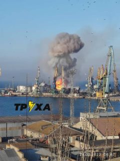 L’Ucraina distrugge una nave della Marina russa a Berdyansk | VIDEO