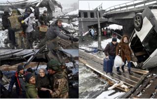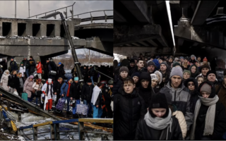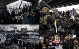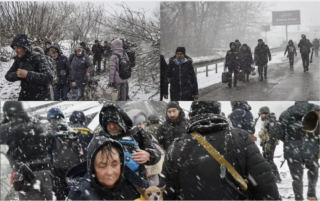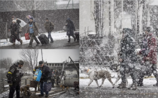 Oggi sono state fotografate centinaia di persone in fuga dalla città di Irpin, nei pressi di Kiev, durante una copiosa nevicata. Nei giorni scorsi Irpin è stata al centro di violenti scontri con le forze russe nel corso della loro missione per accerchiare e conquistare la capitale.