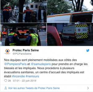 “Intorno alle 5.05 del mattino, la gente ha gridato al fuoco e l’allarme antincendio della mia ragazza ha suonato”, racconta il 25enne Sebastian, che ha passato la notte dalla sua ragazza, a Le Parisien. “L’ho svegliata e ho chiamato i vigili del fuoco. Ci hanno detto di restare dentro ma era troppo soffocante”.