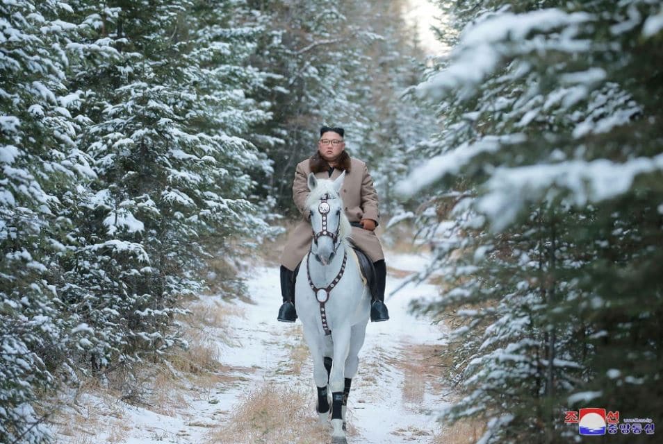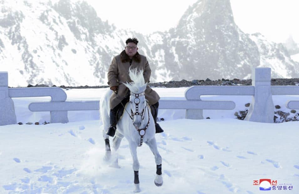 Kim Jong-un a cavallo: il dittatore della Corea del Nord è stato immortalato mentre è intento a cavalcare immerso nel paesaggio pazzesco del monte Paektu, il più alto del paese.