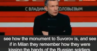 Durante la sua trasmissione sull’emittente Russia 1, Solovyev è tornato addirittura al 1799, quando il generale russo Suvorov, a capo dell’armata russo-austriaca liberò Milano dalle forze francesi.