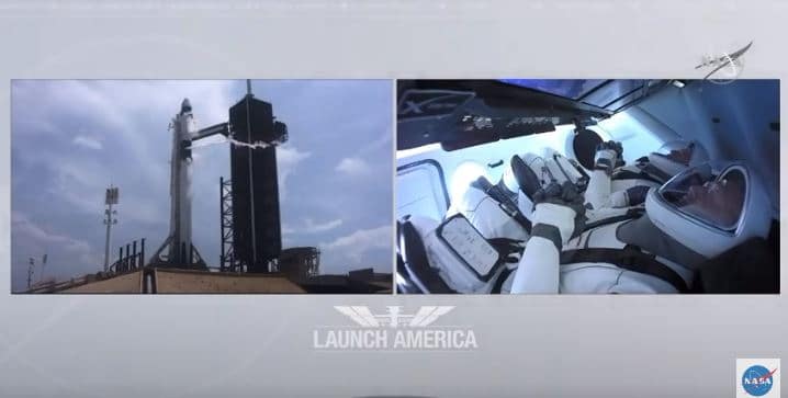 Ore 19,20 – Il portellone della navicella Crew Dragon è stato chiuso! Gli astronauti Doug Hurley e Bob Behnken si sono sistemati all’interno e si preparano al decollo.