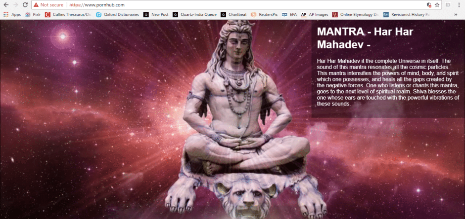 L’applicazione si chiama Har Har Mahadev , dal nome di un canto popolare in onore della divinità Hindu Shiva, e funziona come un qualsiasi “blocco” di alcuni siti web. Non si limita però a oscurare i siti considerati pornografici, ma fa apparire sullo schermo immagini religiose con diversi audio correlati.
