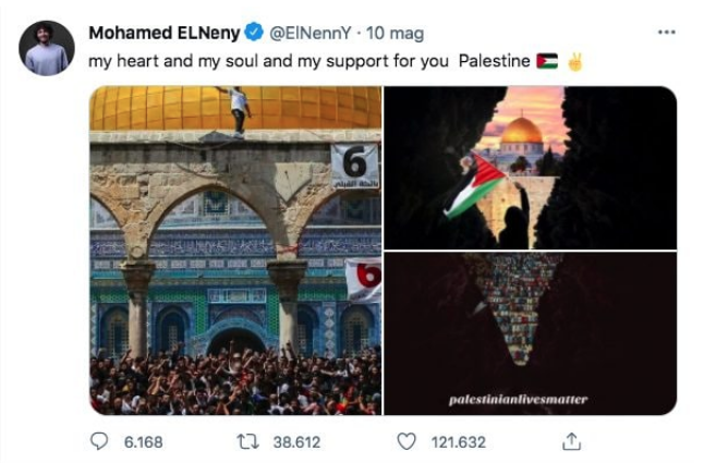 “Il mio cuore, la mia anima e il mio supporto sono con te, Palestina”, ha scritto Elneny su Twitter. Il club londinese si è messo in contatto con il calciatore per chiedere chiarimenti e fargli conoscere le implicazioni della sua presa di posizione su input di Lavazza, uno degli sponsor dell’Arsenal, che aveva espresso perplessità rispetto al messaggio di Elneny.